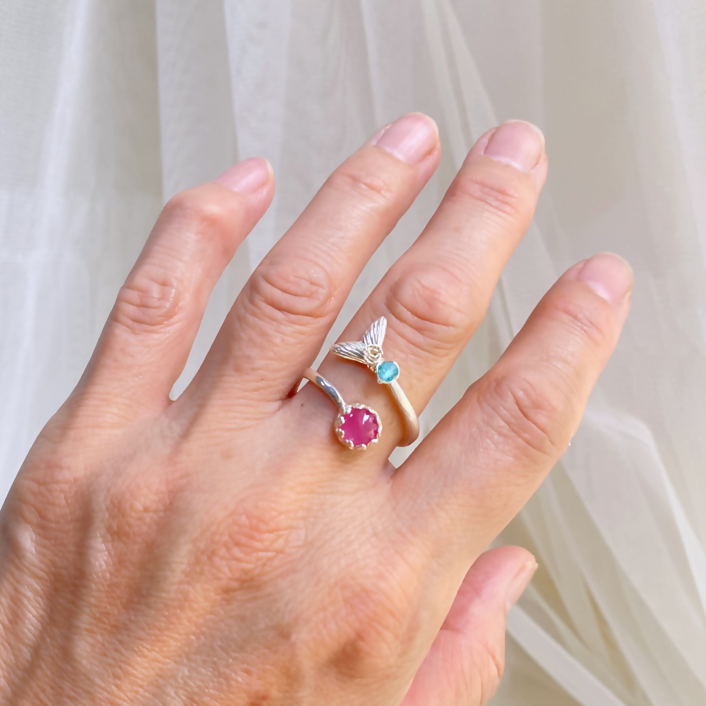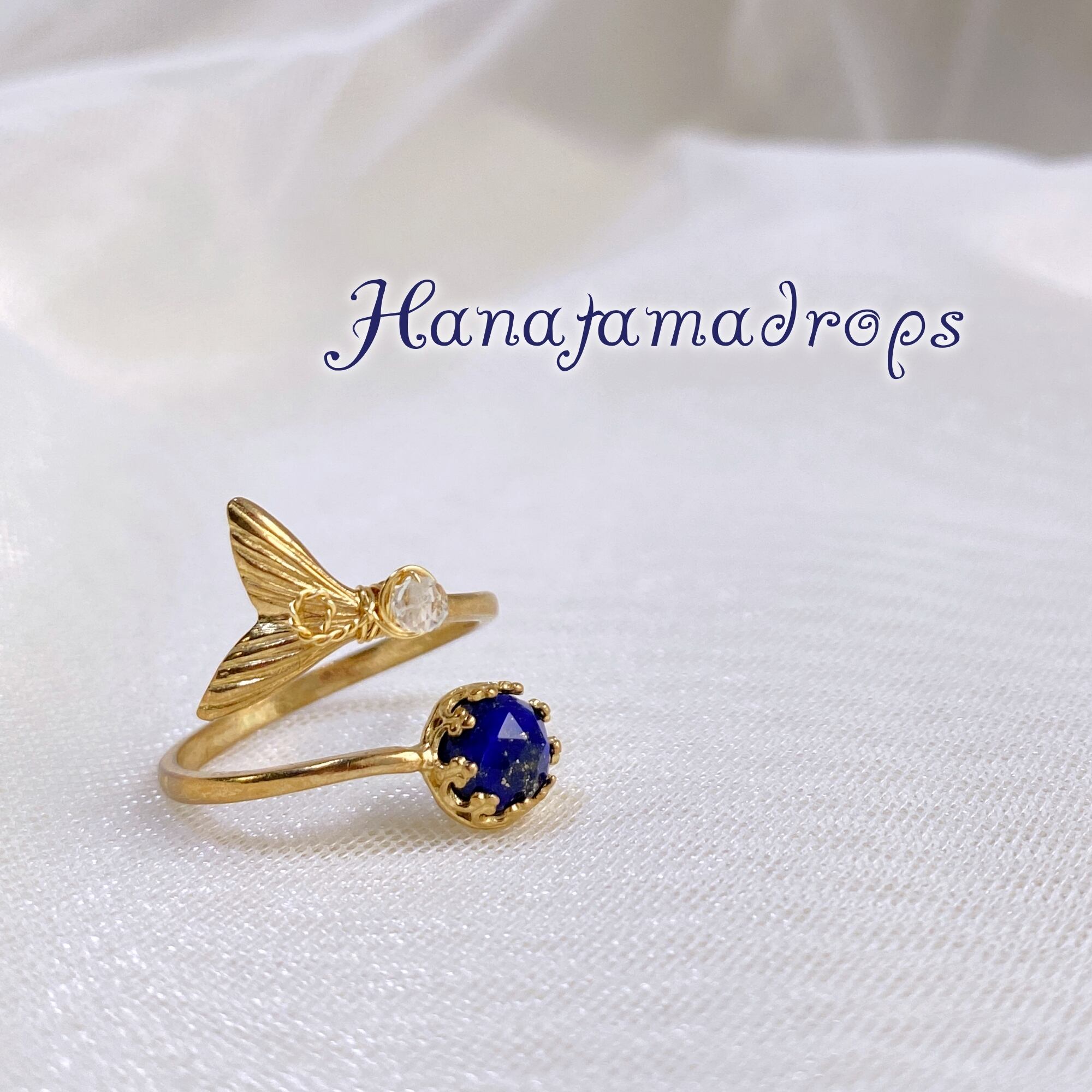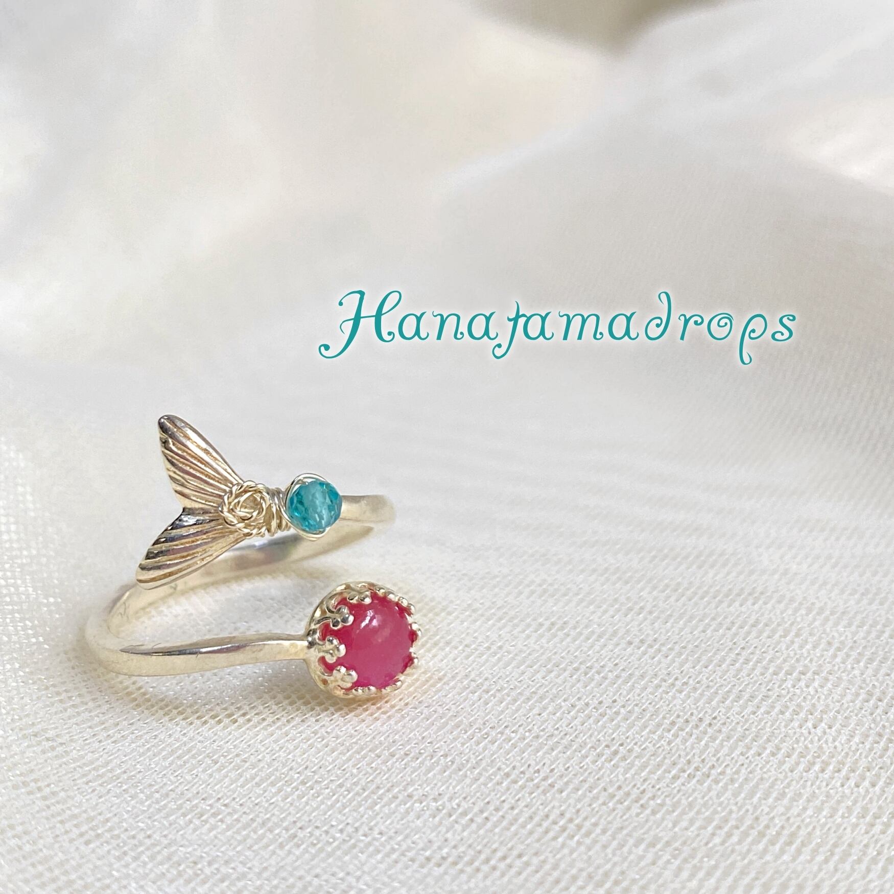 華玉dropsのマーメイドリングはワイヤーアーティストらしく尾の根元に小さな天然石ビーズを添えているのがポイント。