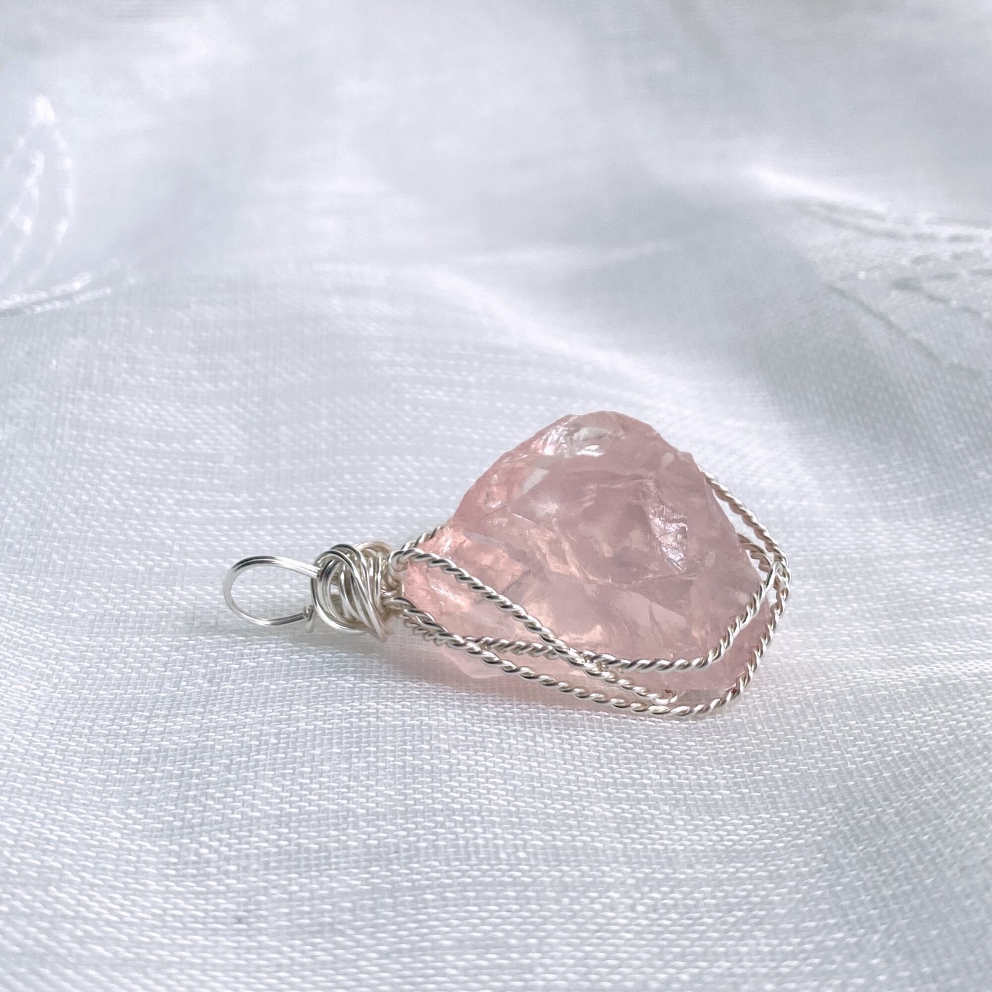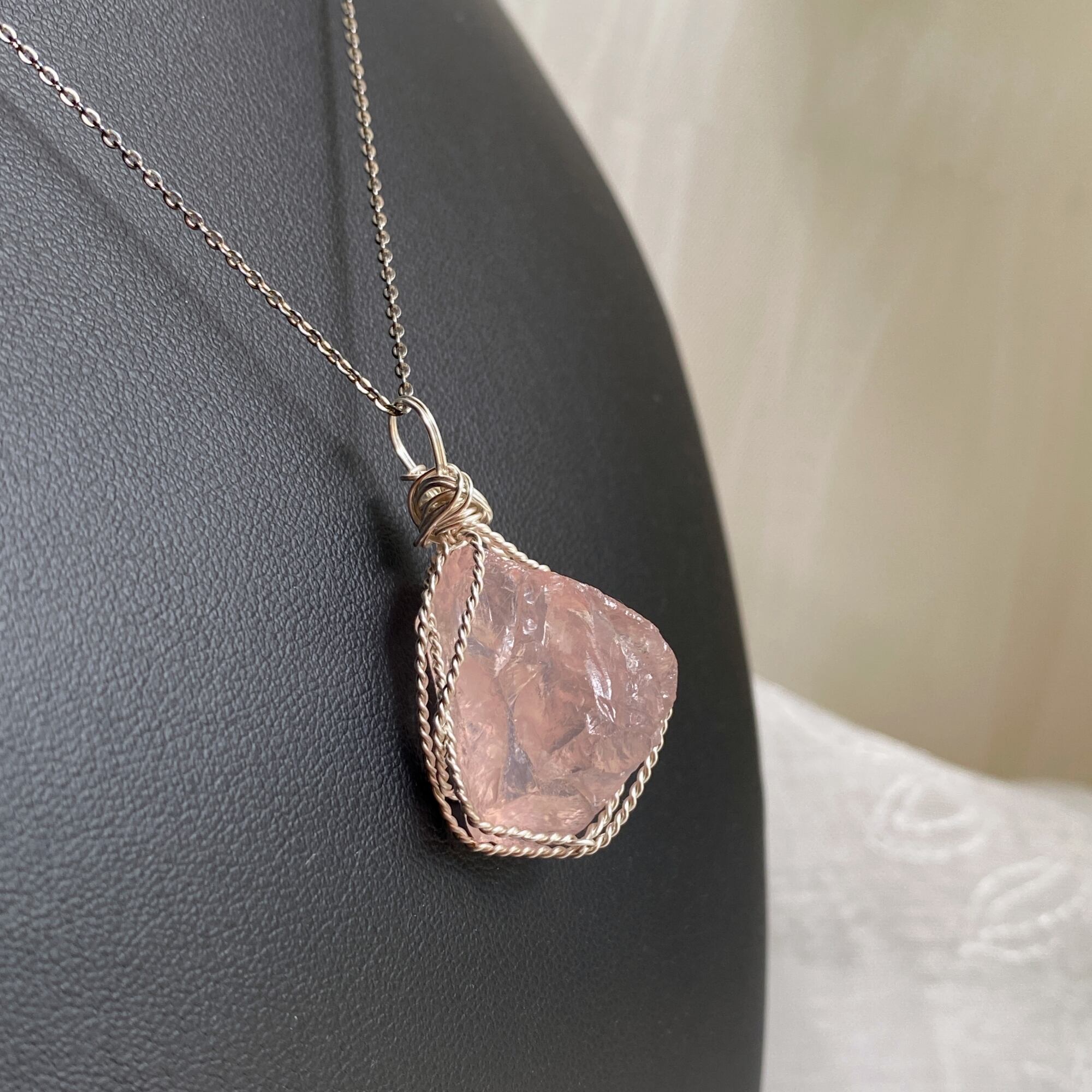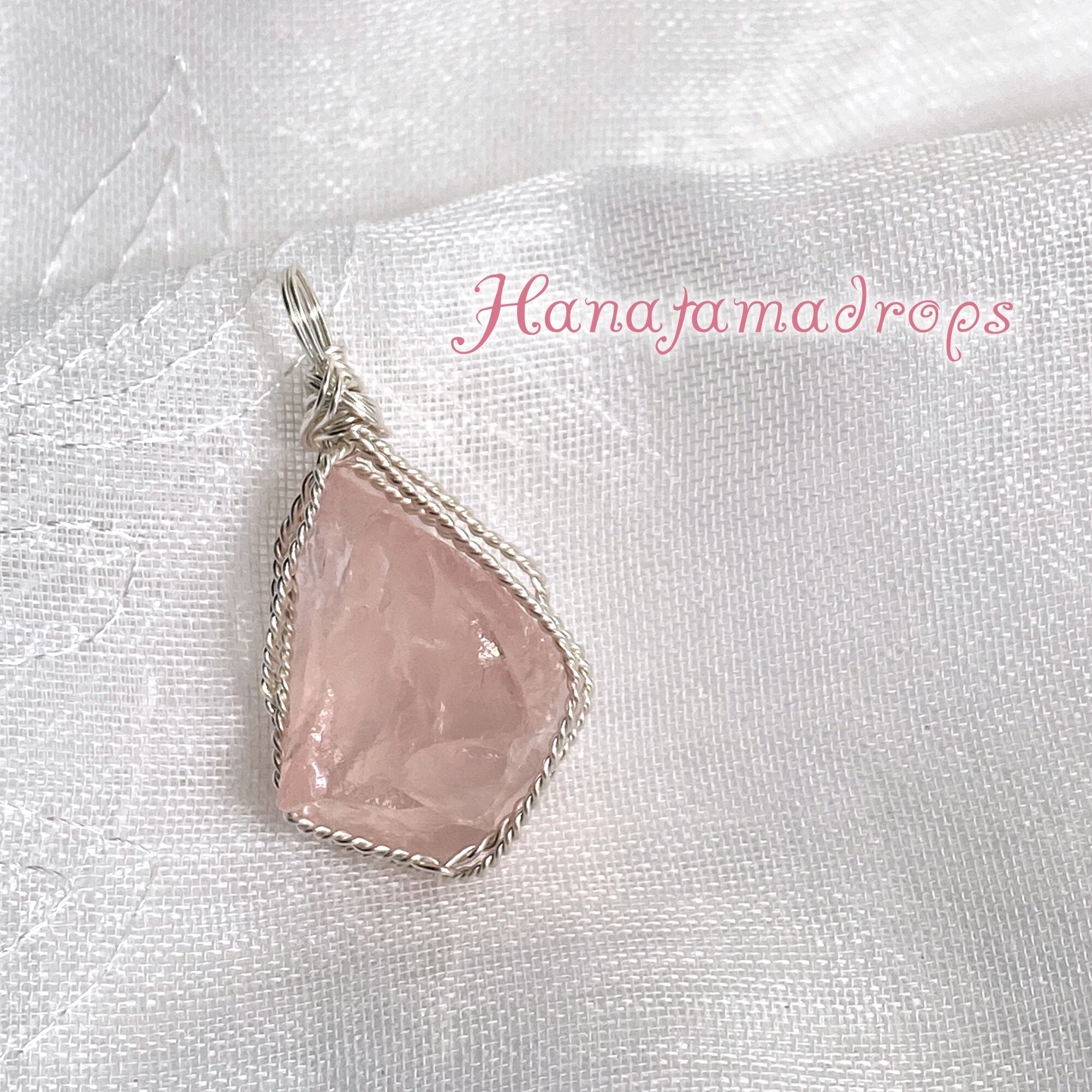 使用材料:ブラジル産ローズクォーツ原石、アーティスティックワイヤー