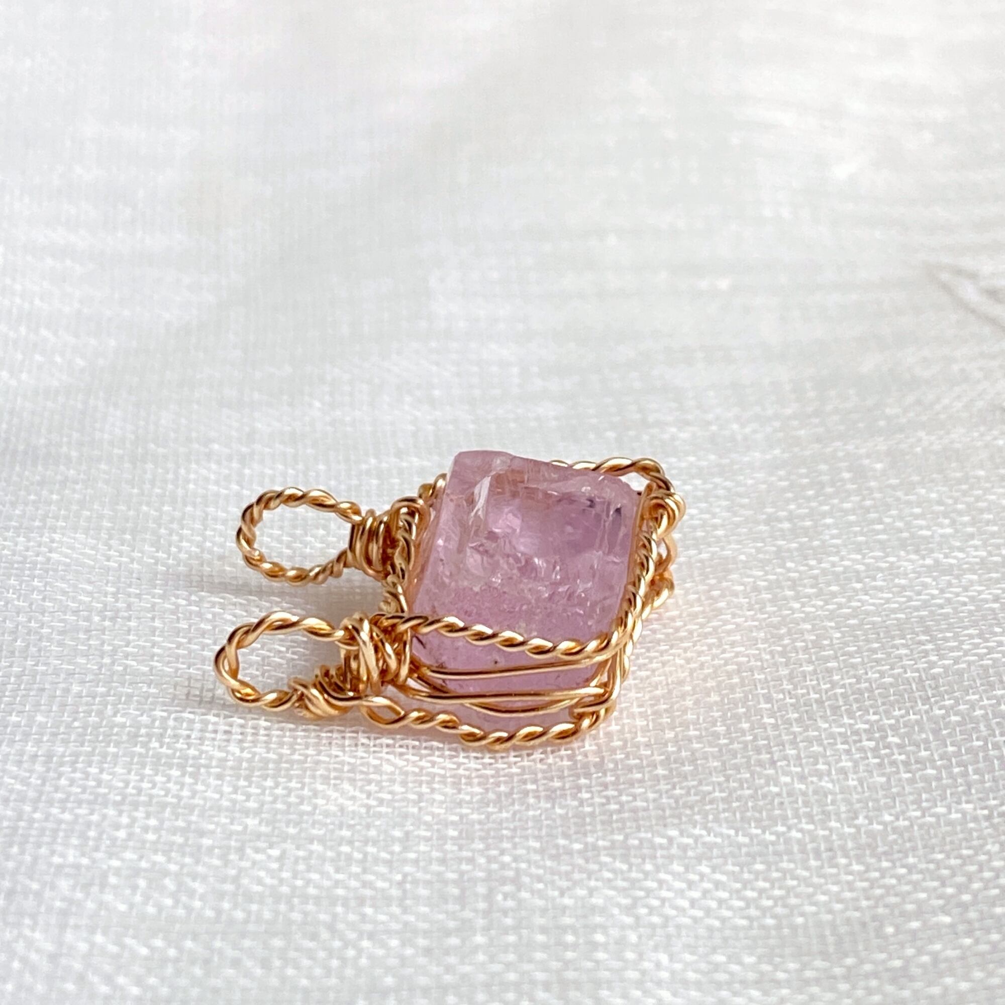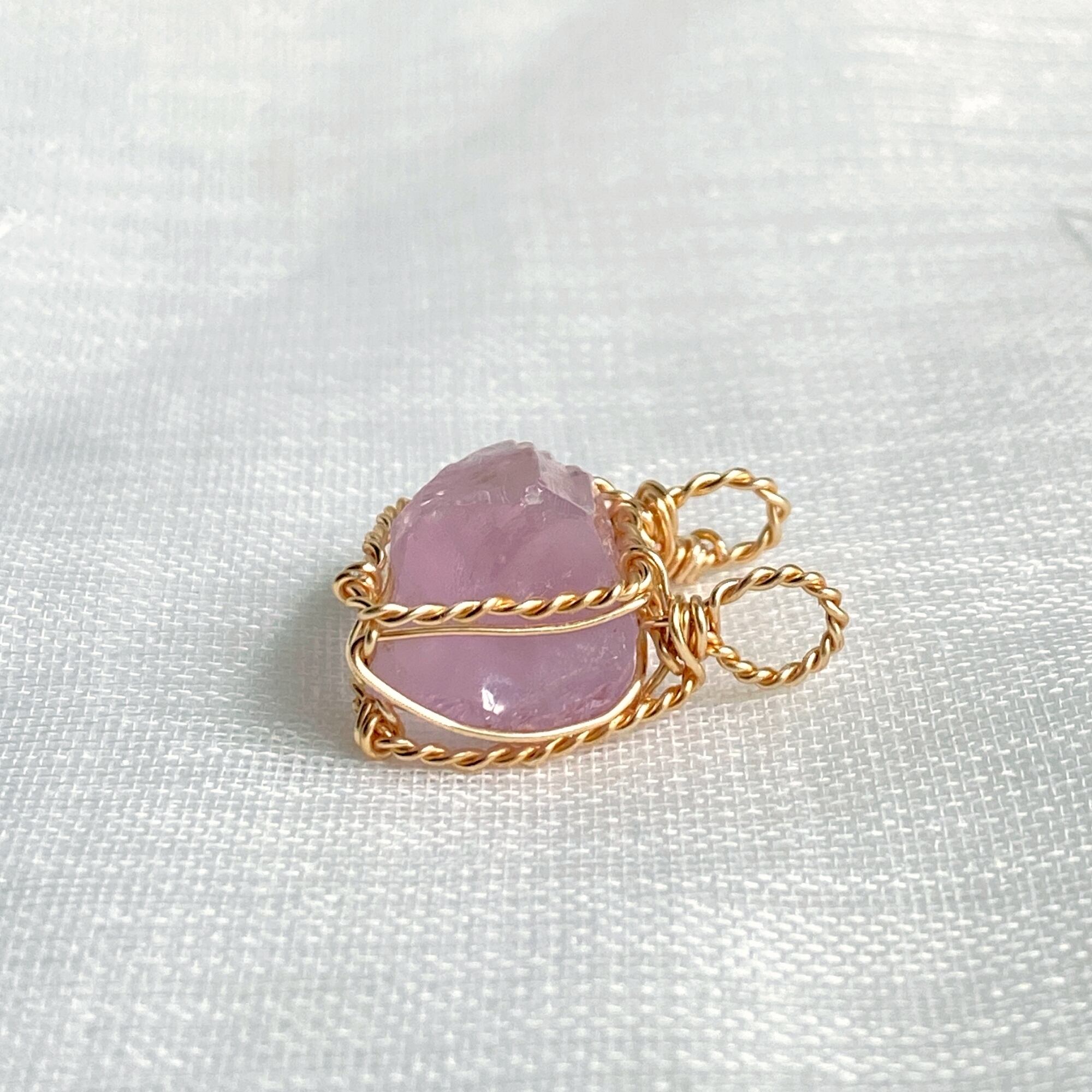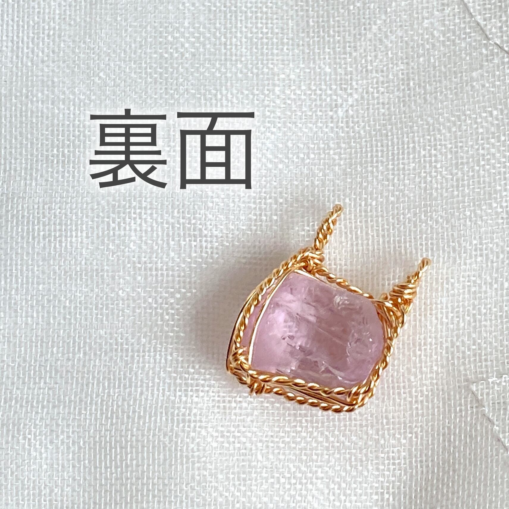 使用材料:クンツァイト結晶原石(産地不明)、アーティスティックワイヤー