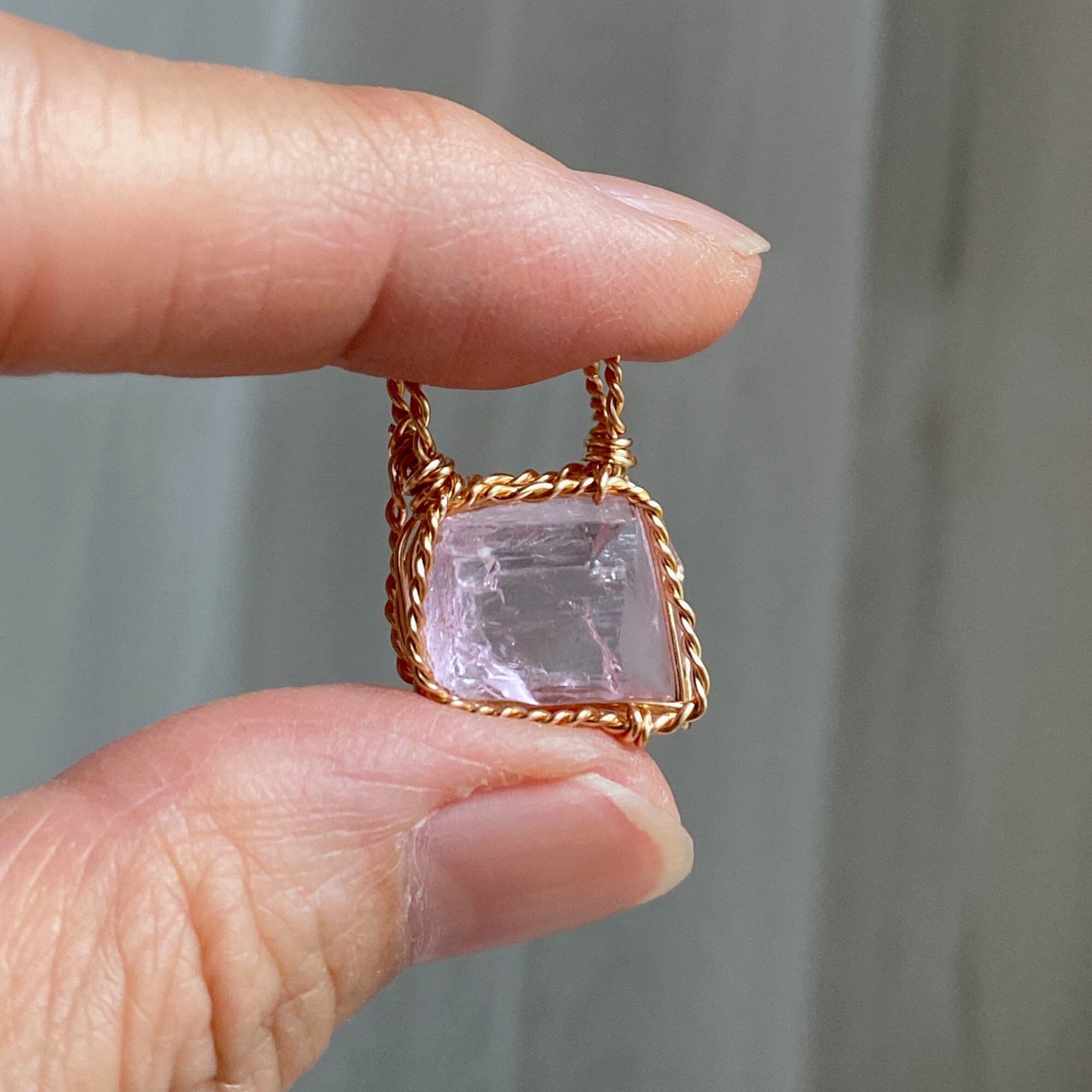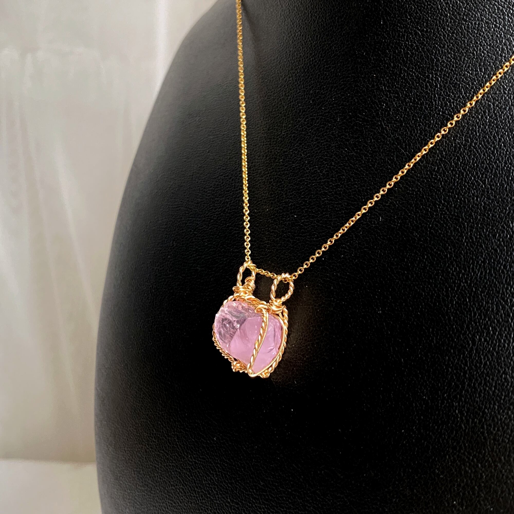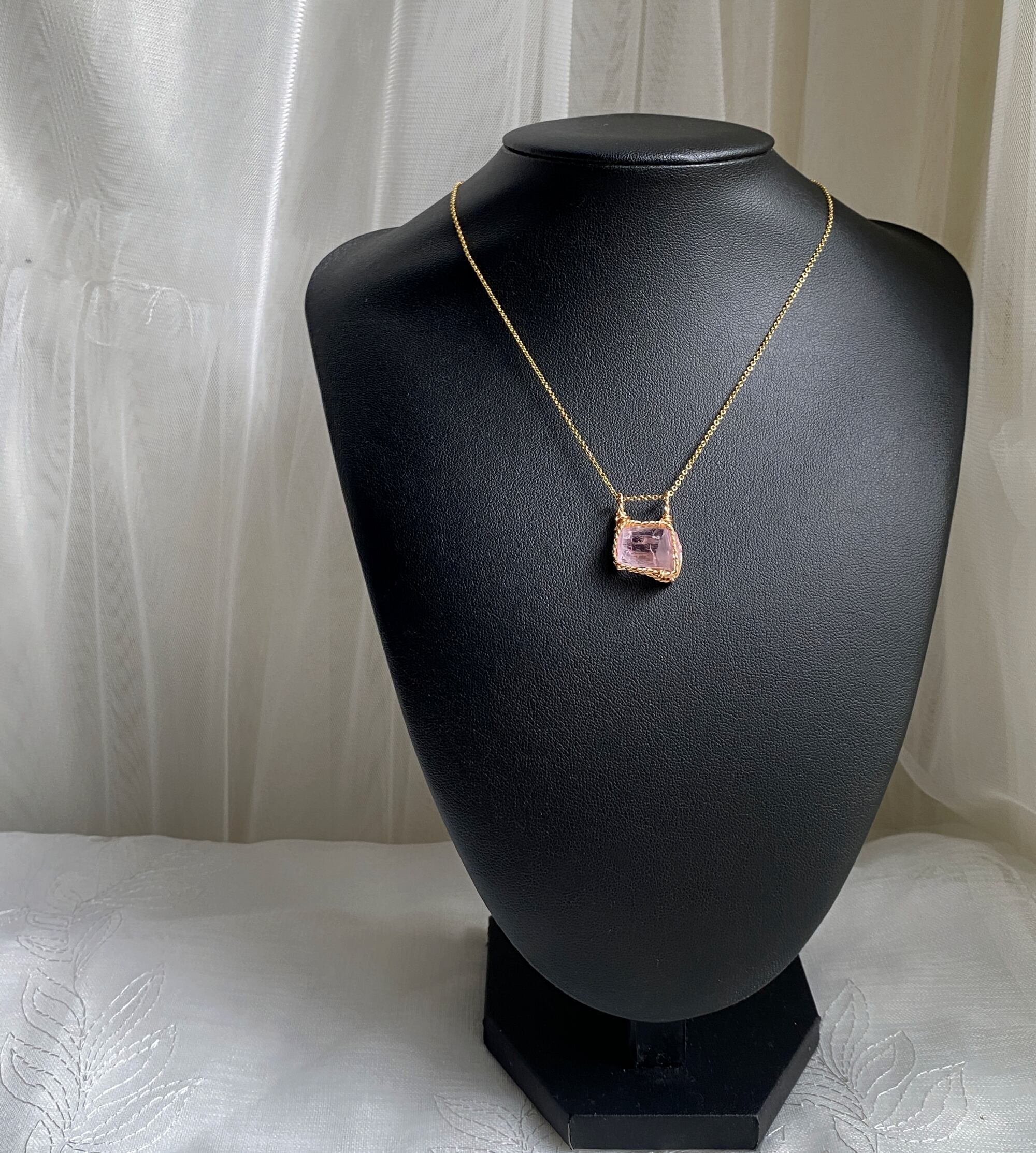 使用材料:クンツァイト結晶原石(産地不明)、アーティスティックワイヤー