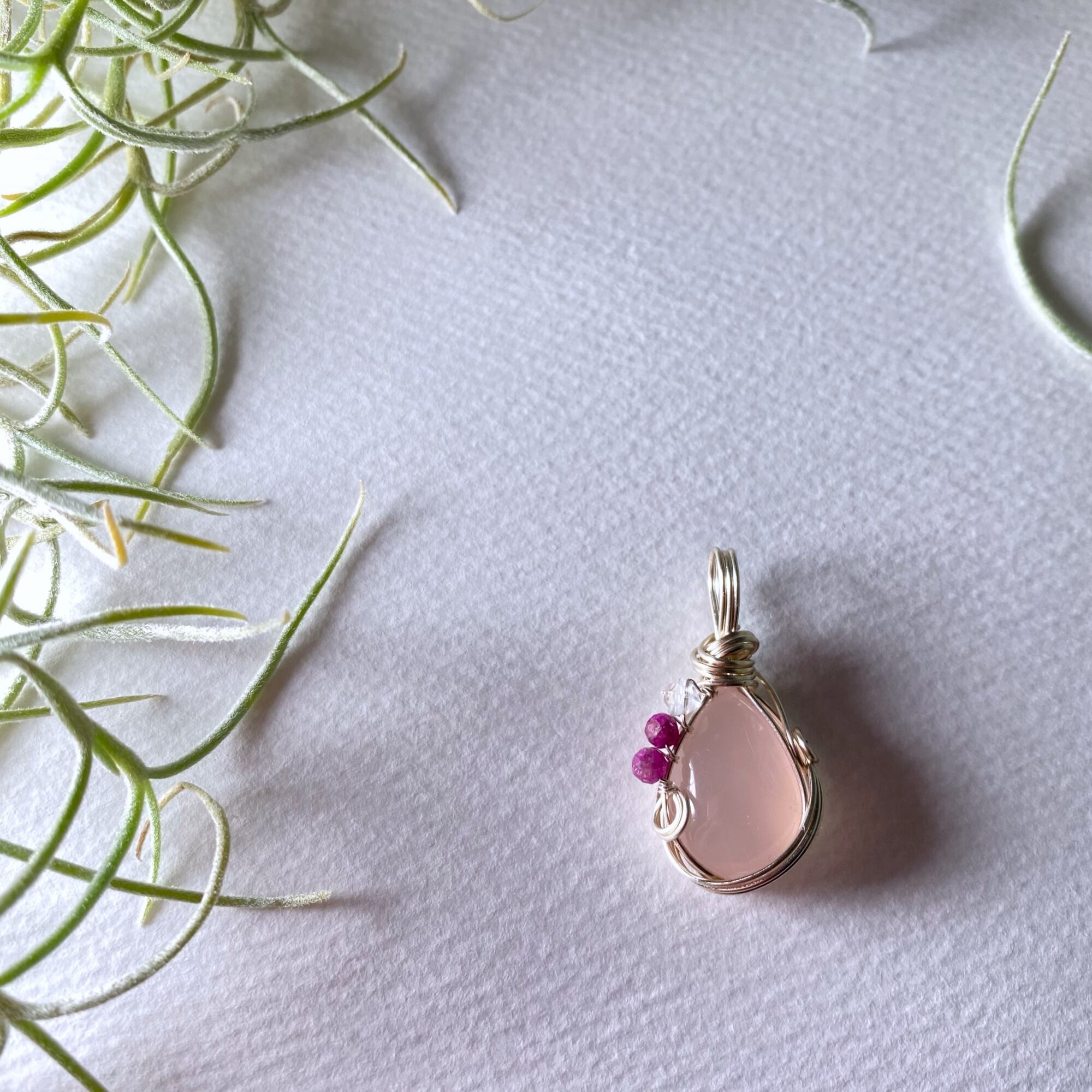 ぷるんとおいしそうなゼリーのようなローズクォーツをシンプルかわいいペンダントトップに。