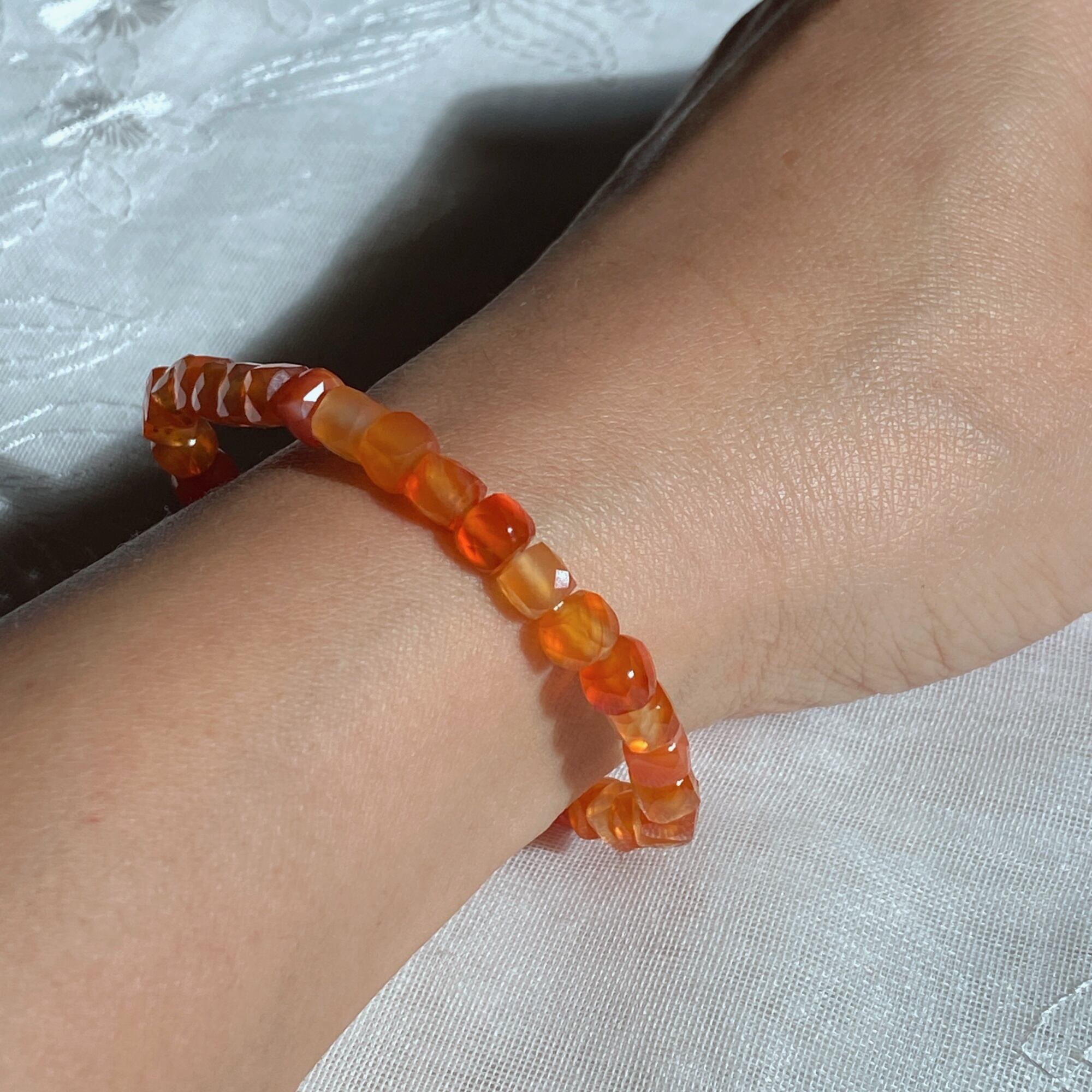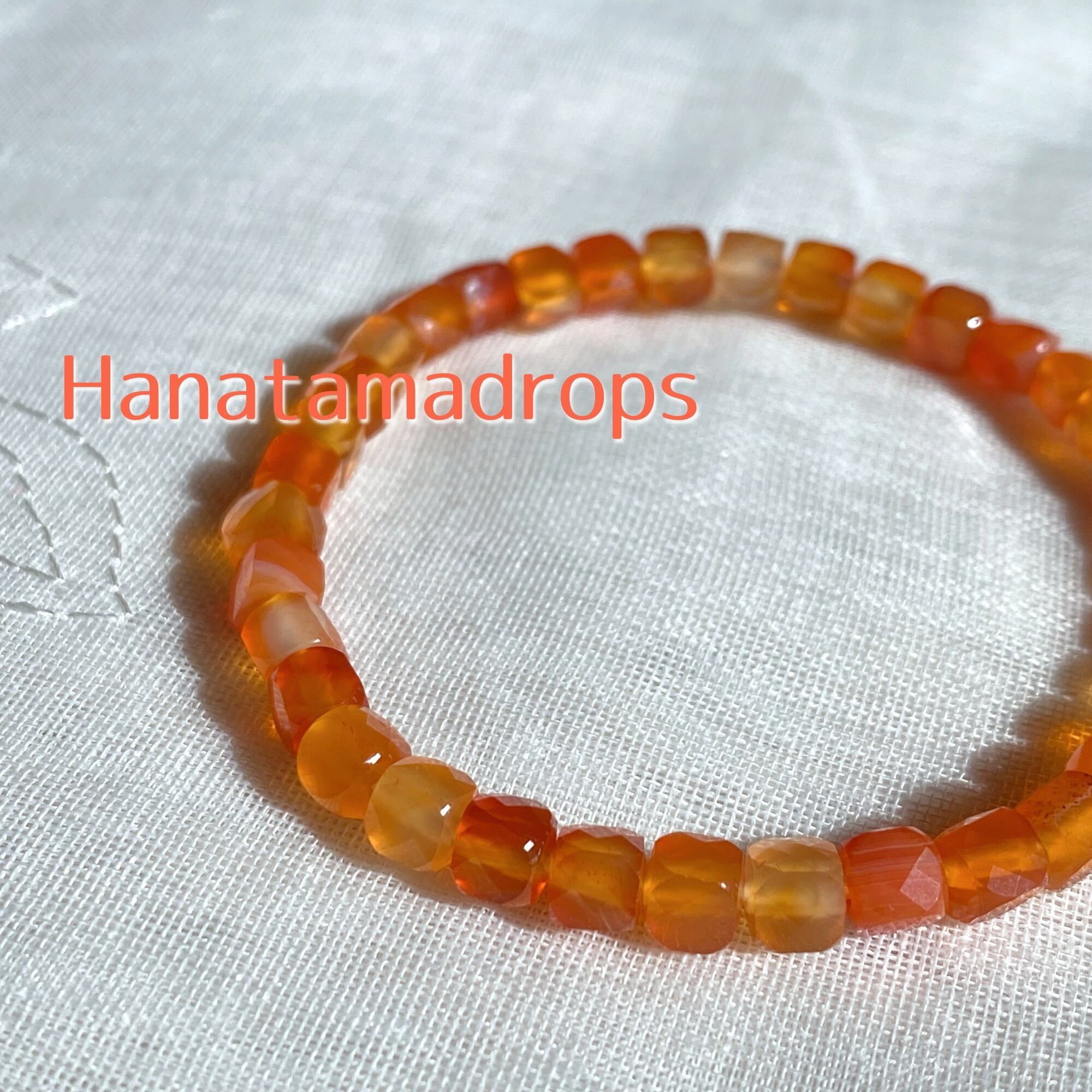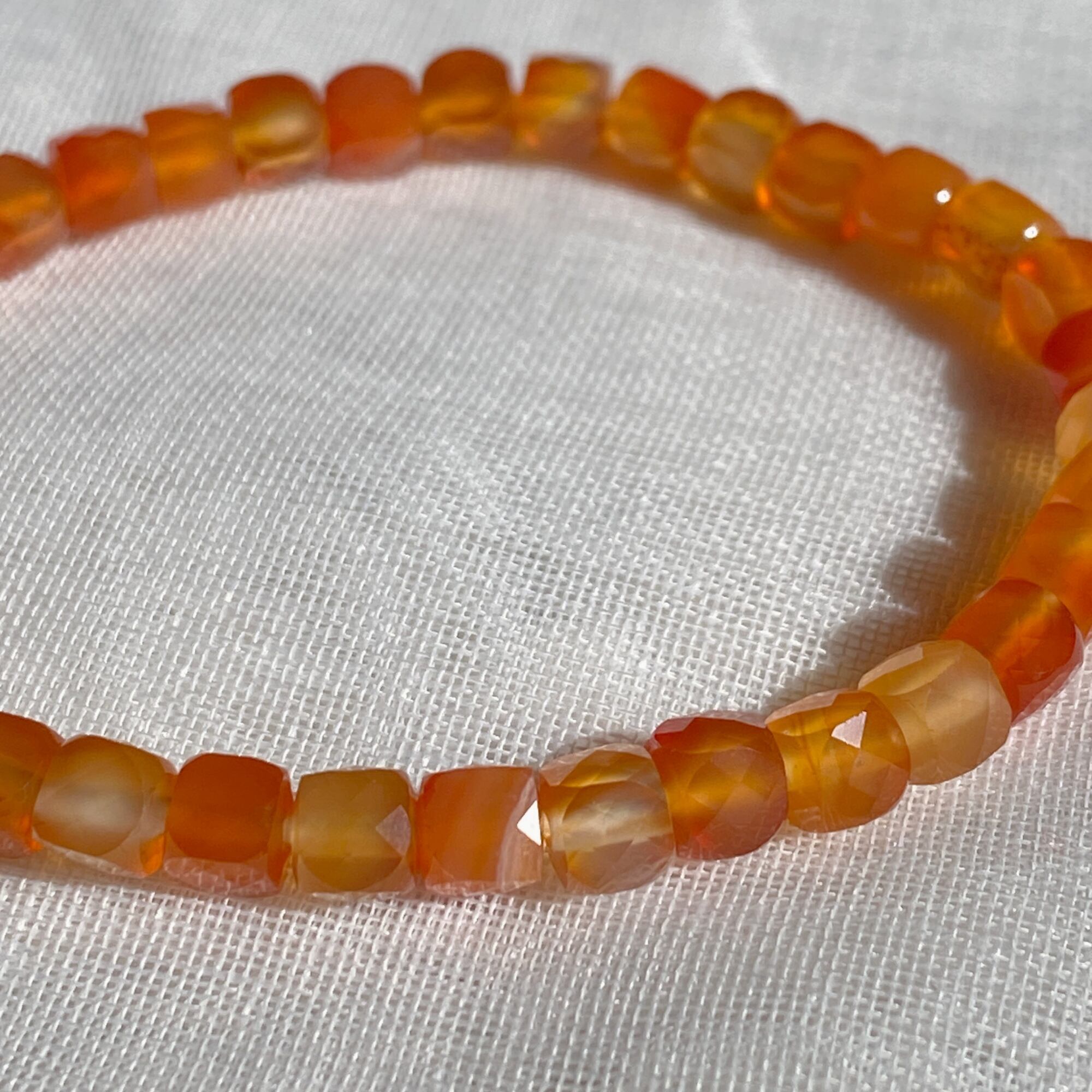 約5mm角のキラキラキューブカットのカーネリアンをゴムブレスに仕立てました。