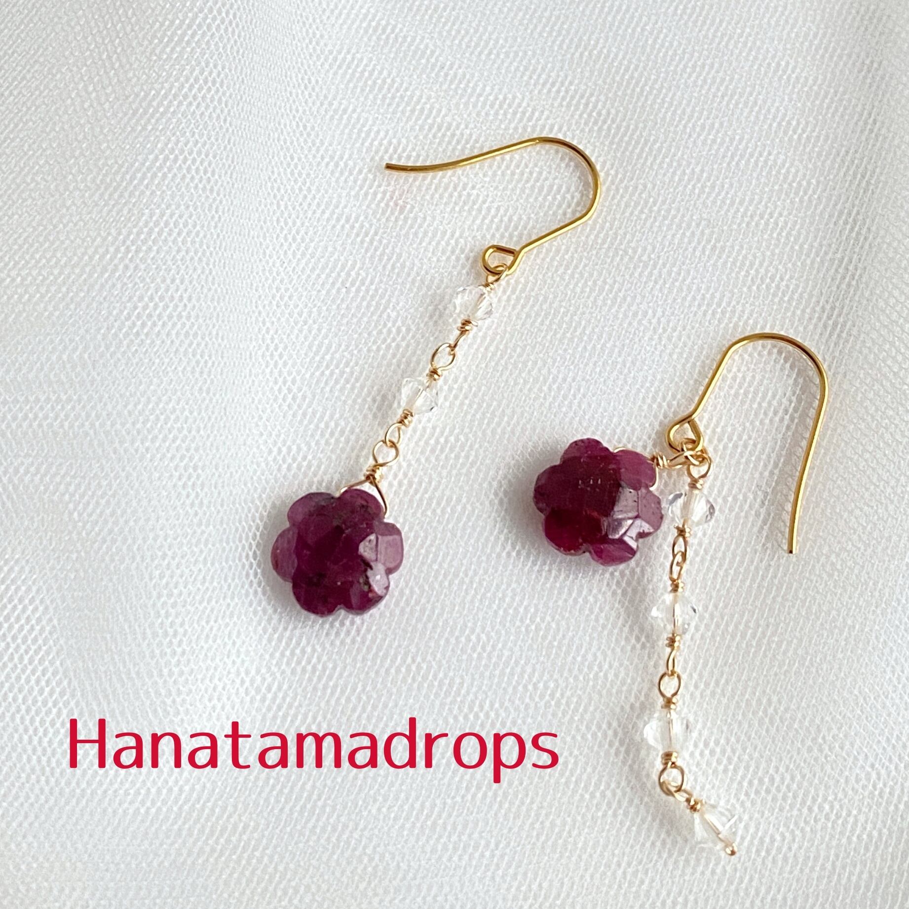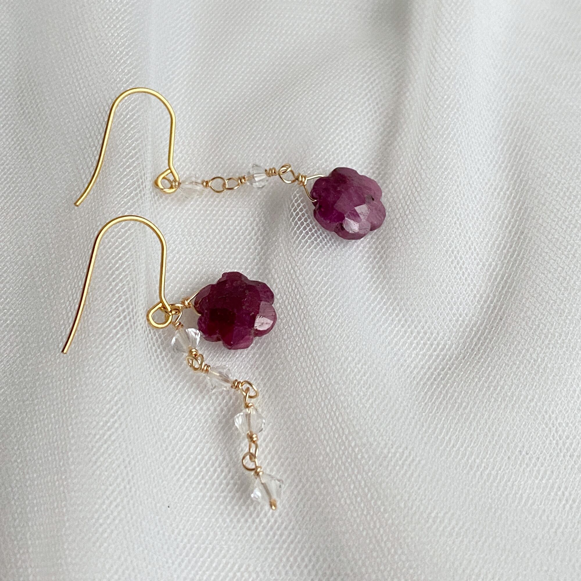 使用材料:モザンビーク産ルビー、水晶、アーティスティックワイヤー、サージカルステンレスピアスフック(ニッケルフリーメッキ)