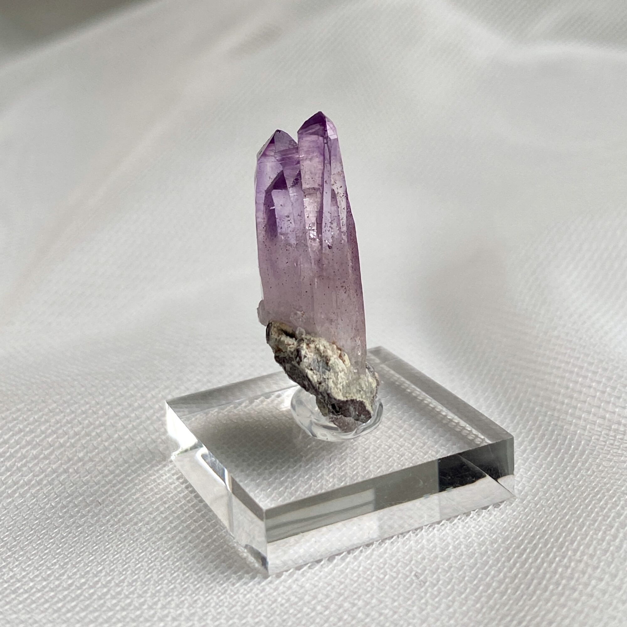 まるで「ビーナスの誕生」の絵画のように、小さなギザギザした母岩の上にアメシストが立っています。