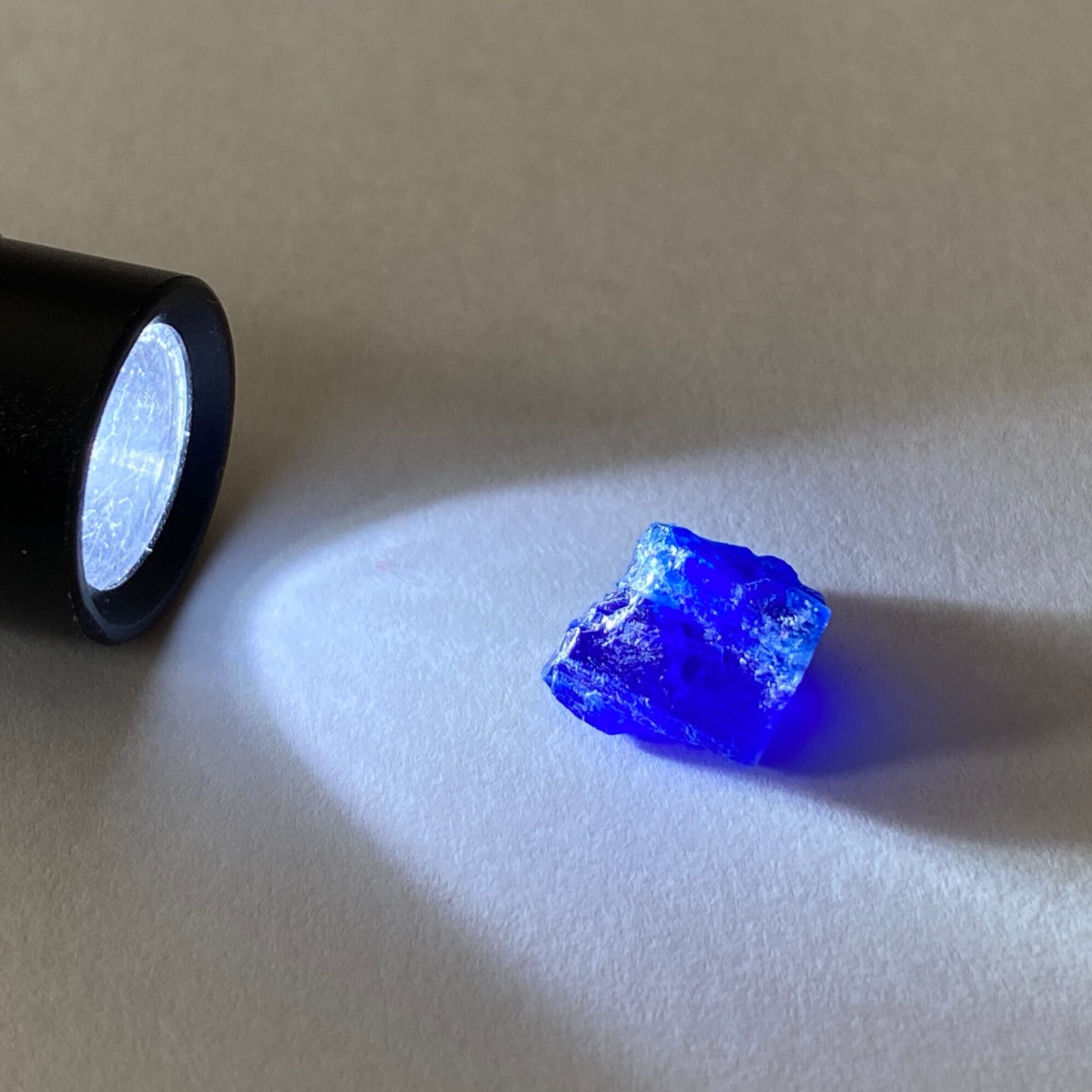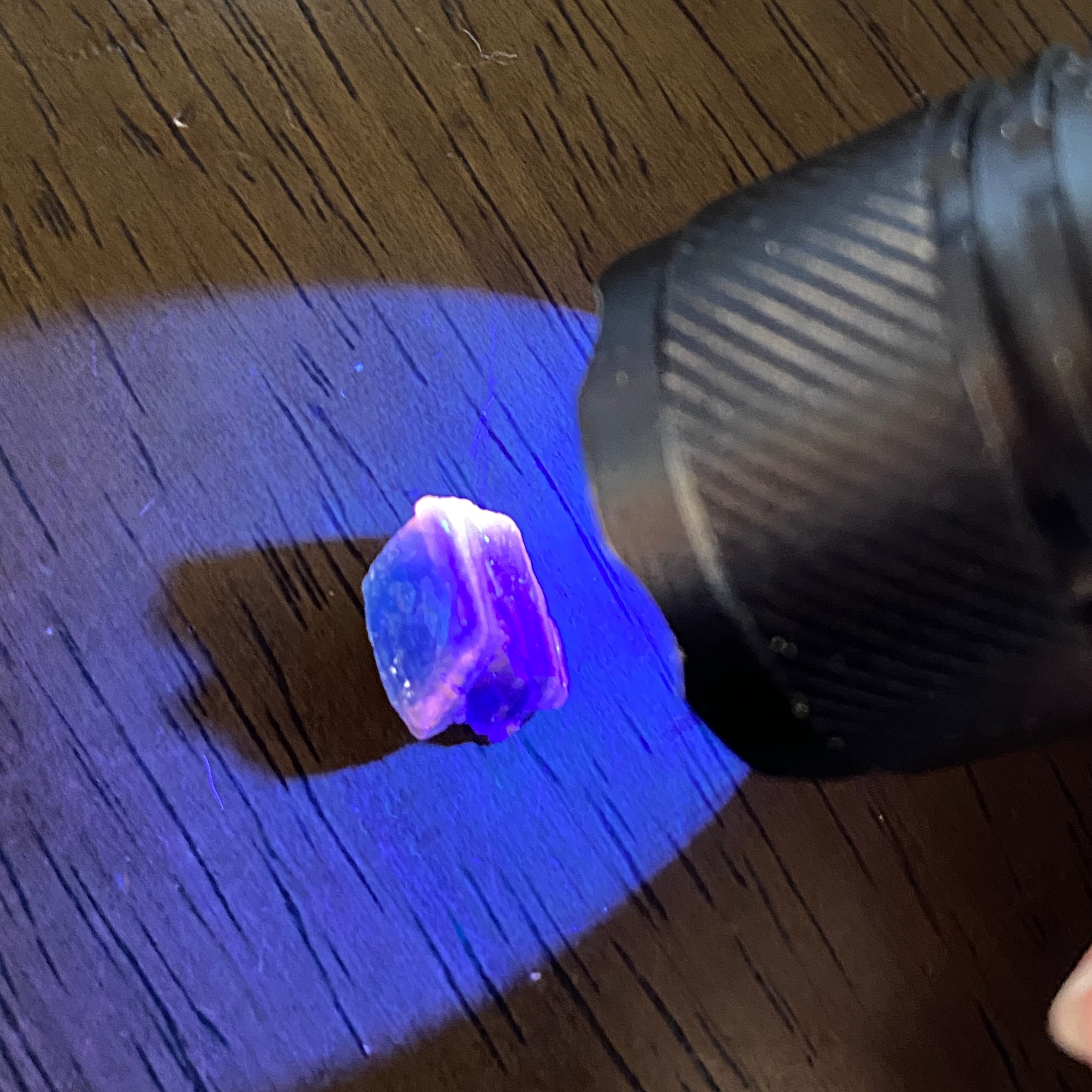 UVライトで蛍光しますが、蛍光の強い面と弱い面があります。