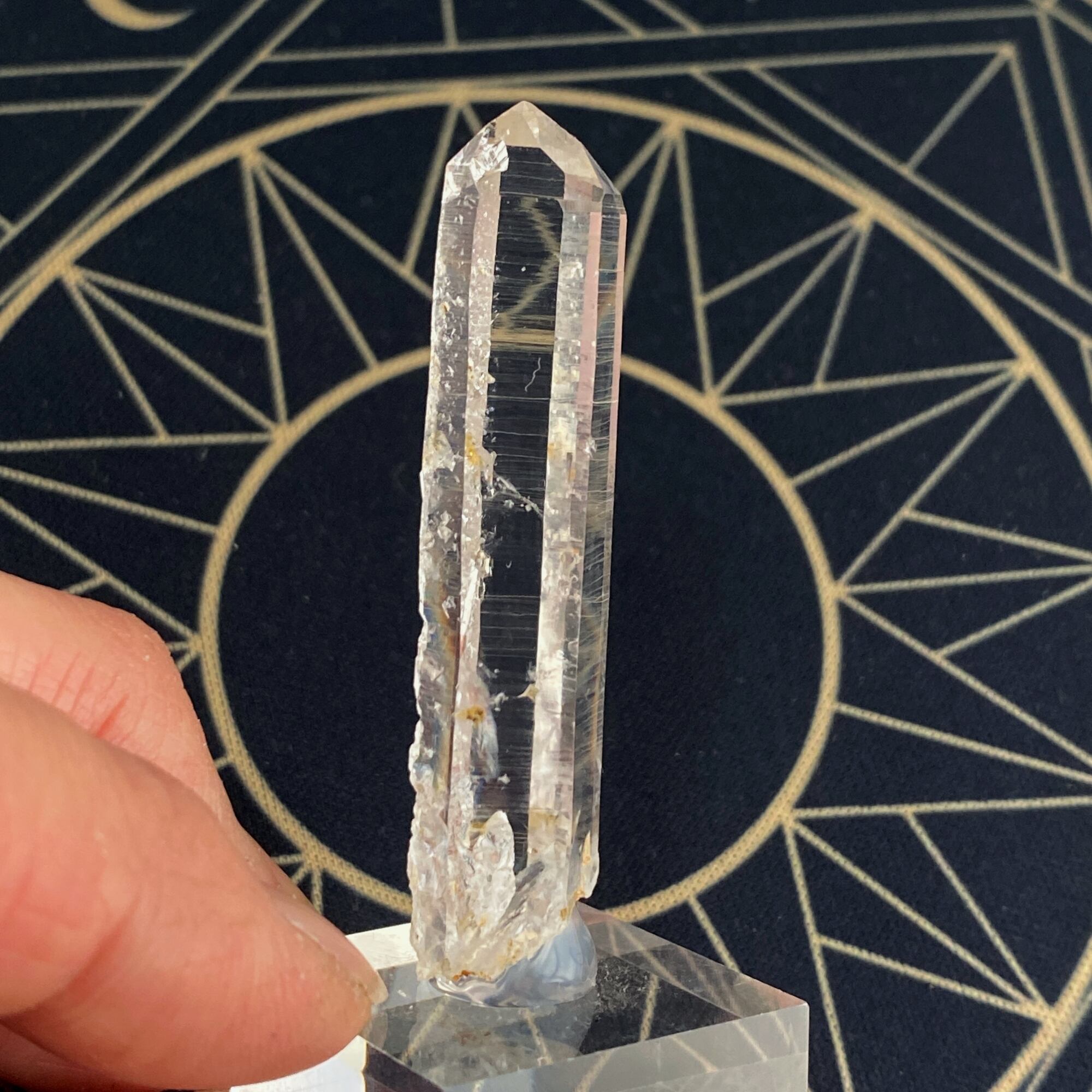 どうしても取りたい方は水晶の根元を持ってグッと力を入れたら取れると思います(これまでいくつか同様のものを外してきましたが大丈夫でした)が、絶対に欠けない補償はできかねますので自己責任でお願いいたします。