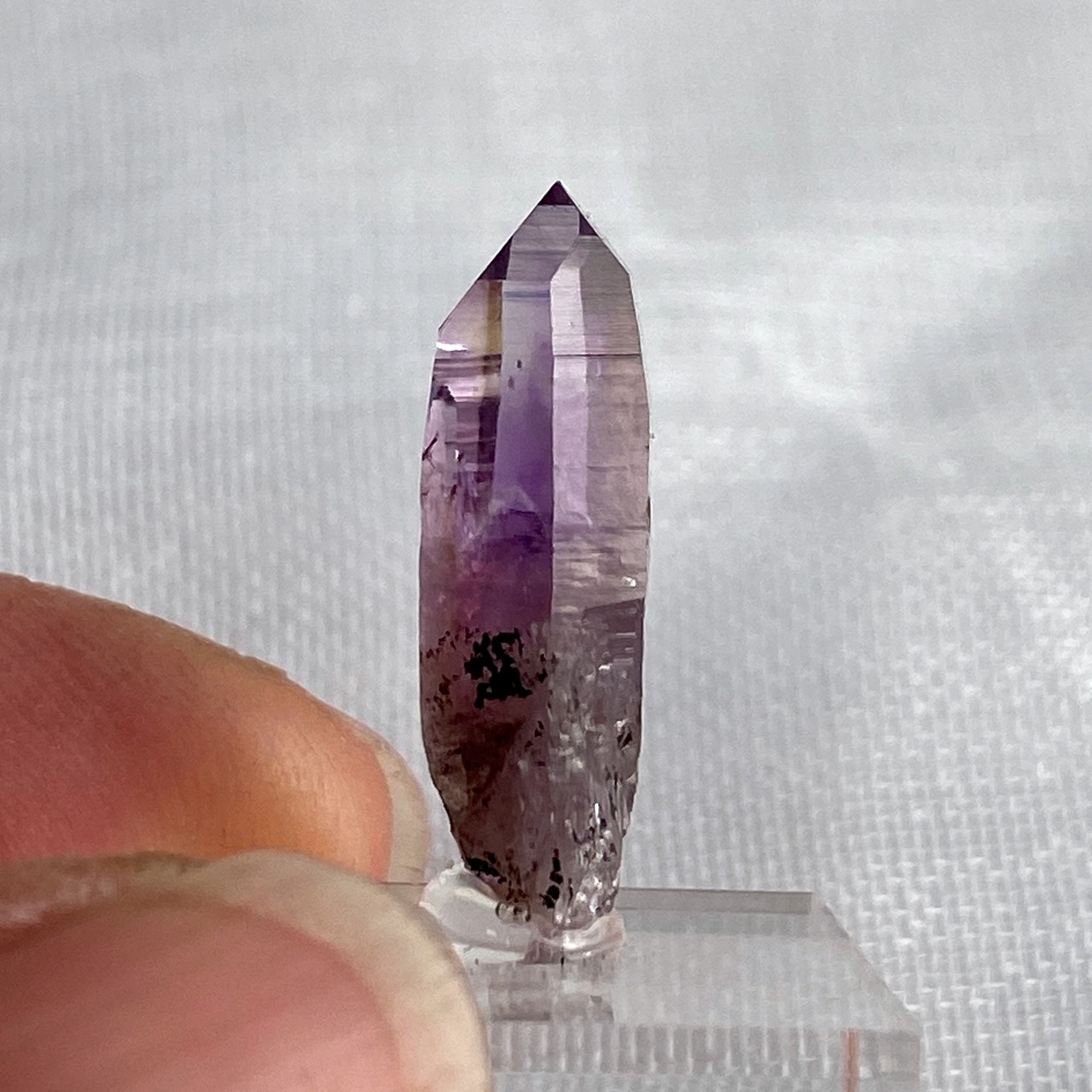 透明度が高く表面の照り艶も良く、ゾーニングと言われる水晶内の紫色の濃淡があるのが特徴です。