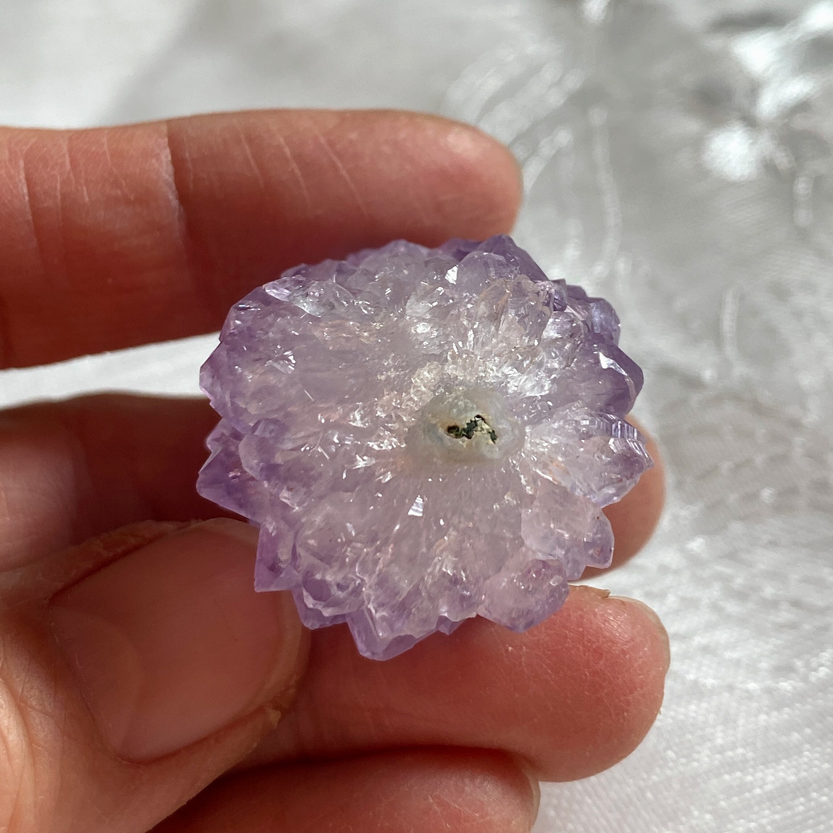 底面を見るとこれを薄くスライスしていくと綺麗なスタラクタイトアメシスト(フラワーアメシスト)になるピースなのがわかります。